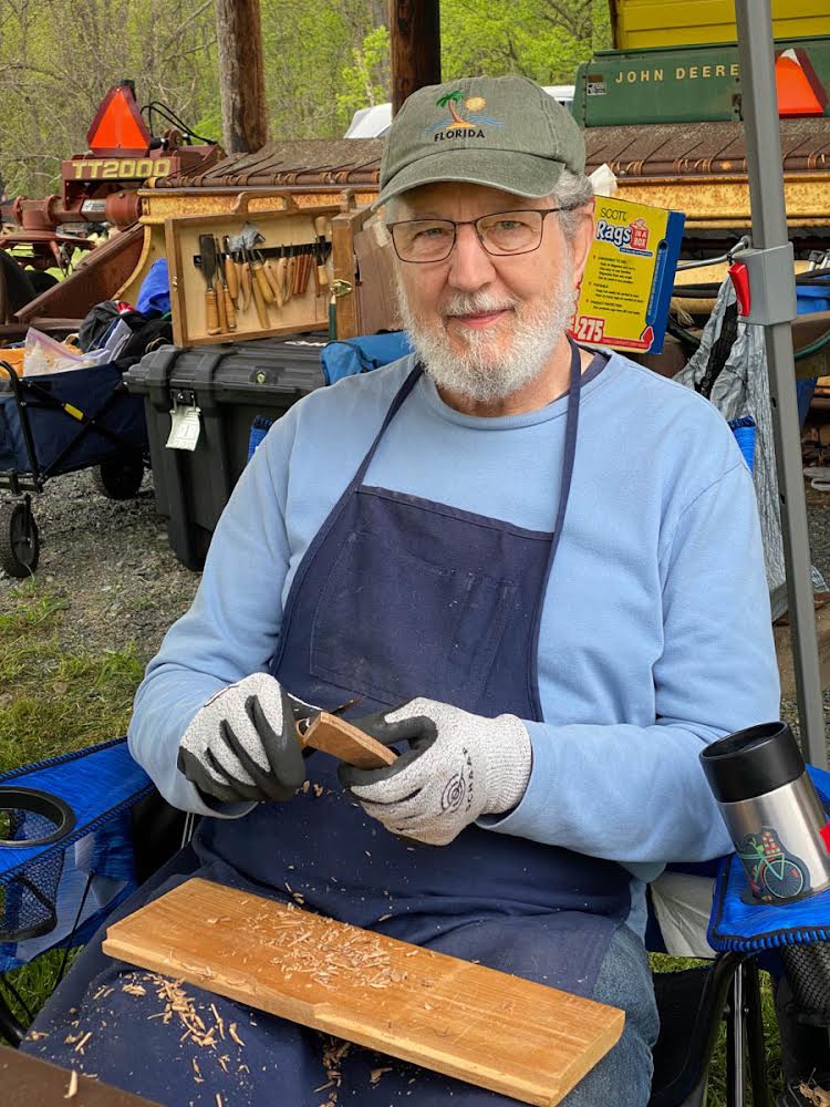 Micheal has enjoyed carving since we got his first pocket knife as a child. Micheal’s rendition of volunteers washing the Vietnam Memorial is a true inspiration. Micheal teaches introductory carving classes at the local Woodworkers Club / Woodcraft. Michael has been a regular participant in the annual Renaissance Festival.